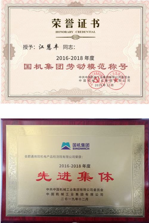 12月30日下午,國機集團舉行勞動模范和先進集體表彰大會。我院總經理助理江慧豐同志獲得“2016-2018年度國機集團勞動模范”榮譽稱號,我院機電產品檢測院獲得“2016-2018年度國機集團先進集體”榮譽稱號。
